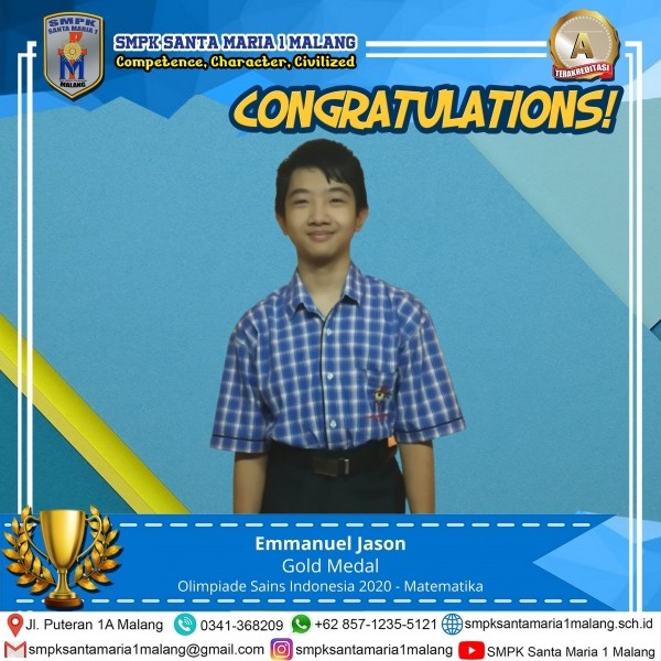 Halo Sahabat STAMSA. Wah lagi dan lagi, Jason mendapatkan Prestasi yang gemilang. Dia mendapat medali emas dalam OSI (Olimpiade Sains Indonesia) 2020 lho . Wah, Selamat ya