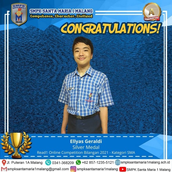 Sebuah Prestasi gemilang didapatlan oleh Sahabat kita, Ellyas Geraldi dalam bidang Matematika di Read1 Online Competition Bilangan 2021 yang diselenggarakan pada 14 Februari 2021