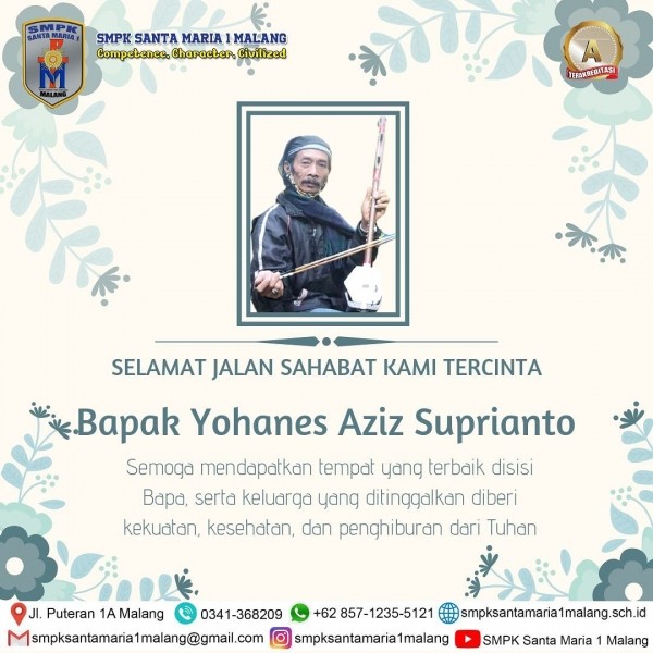 Selamat Jalan Sahabat Kami, Bapak Yohanes Aziz Suprianto. Terima kasih telah memberikan kami ilmu yang sangat berharga dan terima kasih pula telah mendampingi anak-anak kami dalam bermain musik selama ini. Semoga Tuhan memberikan tempat yang terbaik untuk bapak di Kerajaan Surga. Amin